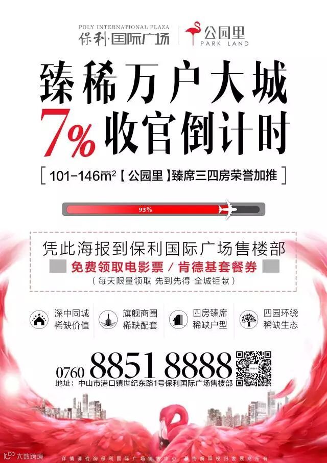 领取方式一:凭纸质海报到保利国际广场售楼部领取肯德基套餐券或者电影票1张。海报已在全中山派发,期待遇见幸运的你~
