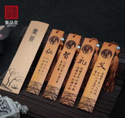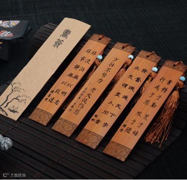中国风特色竹雕毛竹书签竹牌一对