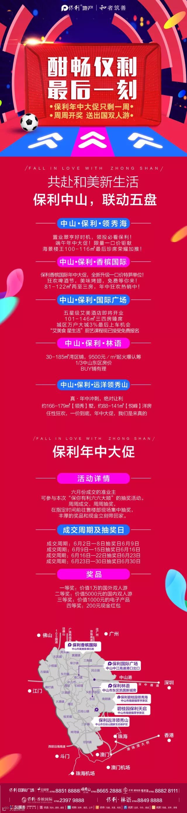保利地产,隶属中国保利集团的大型房地产上市公司,成立于1992年,以中国高端精品住宅开发为主,世界500强企业,中国地产长城。 以国匠风华,厚载26年筑城经验,深耕中山8载,先后开发保利林语、保利国际广场、保利香槟国际、保利碧桂园领秀海、保利远洋领秀山、碧桂园保利天启6个标杆项目,造成实力以及品牌影响力有目共睹。