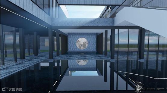 首层设计中运用大块面、大开间,采用开放式的布局,进门第一眼是一大片的浅水池和庭院结合的灰空间。