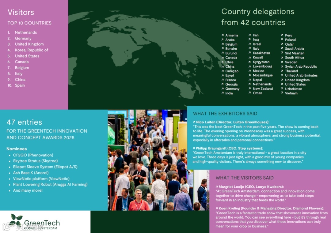 上届展会再次吸引全球40多个国家和地区的近565家企业参展,参展面积达到35,000平方米,有近20,000名专业人士和行业领域专家聚集于荷兰,分享知识、发布新产品、洽谈合作等。