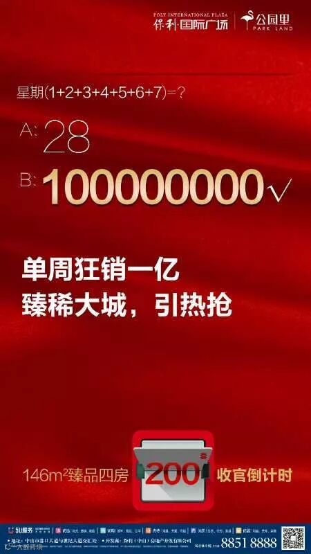 保利国际广场上周狂销一个亿,为致谢全城厚爱,本周末,22栋133-146㎡臻席三四房新品载誉加推,团购专场钜惠不断。八年配套大城,给你满满的惊喜。