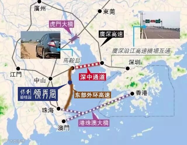 保利碧桂园·领秀海咫尺东部外环高速公路,直转深中通道,快速连通珠三角各地。深中通道东接深圳机荷高速,未来翠亨有望融入深圳国际机场半小时辐射圈。