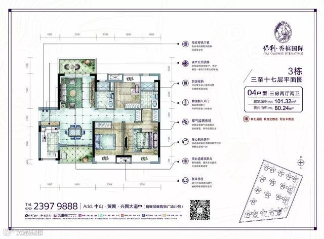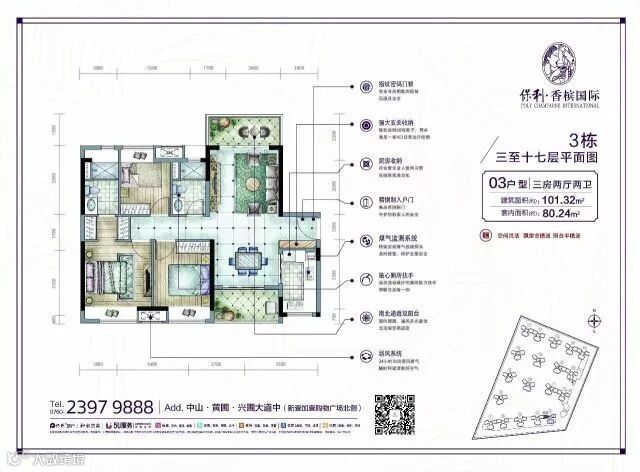 保利·香槟国际享有建筑本身的形态优势,南北通透,户部朝南;南北通透的房子采光好,面朝南接受阳光,形成自然冷热的交叉循环,空气流动性强。南北通透的好房子,多面采光,引一室阳光清风。