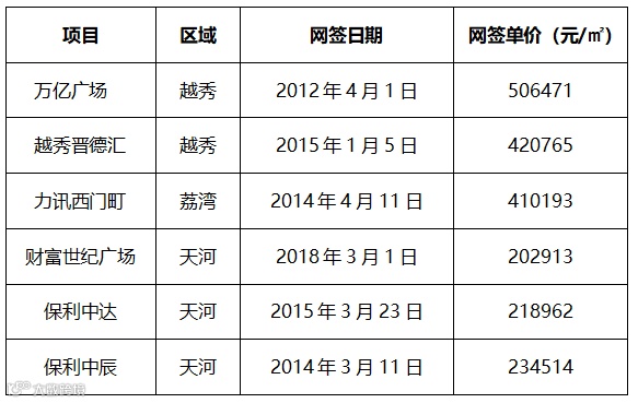 再来看看广州这座城市的商铺天价:广州商铺出现40万+及50万+的网签。网签价506471元/平的物业,是位于越秀区的万艺广场,当年,一个4平方米的小铺,卖出202.59万的高价,令人瞠目结舌。(数据来源:中指院,广州房产)高价铺均位于广州老城区越秀、荔湾、天河,车水马龙,人流量高度集中,上下九、北京路等这样的步行街,拥有这样的天价再寻常不过,毕竟经营商铺后能有高回报高利润。