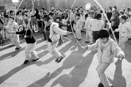 小时候会约一群小伙伴出来一起玩“跳绳”、“跳房子”