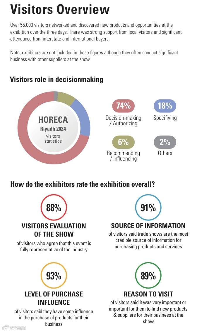HORECA 是中东最大的食品及酒店系列展,已在黎巴嫩、约旦、科威特、阿曼、沙特利雅得和吉达举办,历史悠久,在沙特阿拉伯利雅得举办了13 年。30 来年时间里HORECA 系列展为中东的酒店、餐饮、食品行业提供了绝佳的平台,吸引了大量优质的供应商和买家。