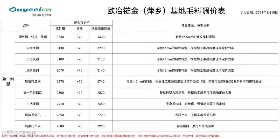 1月10日公司中心基地毛料收货价格全部上调70元/吨。