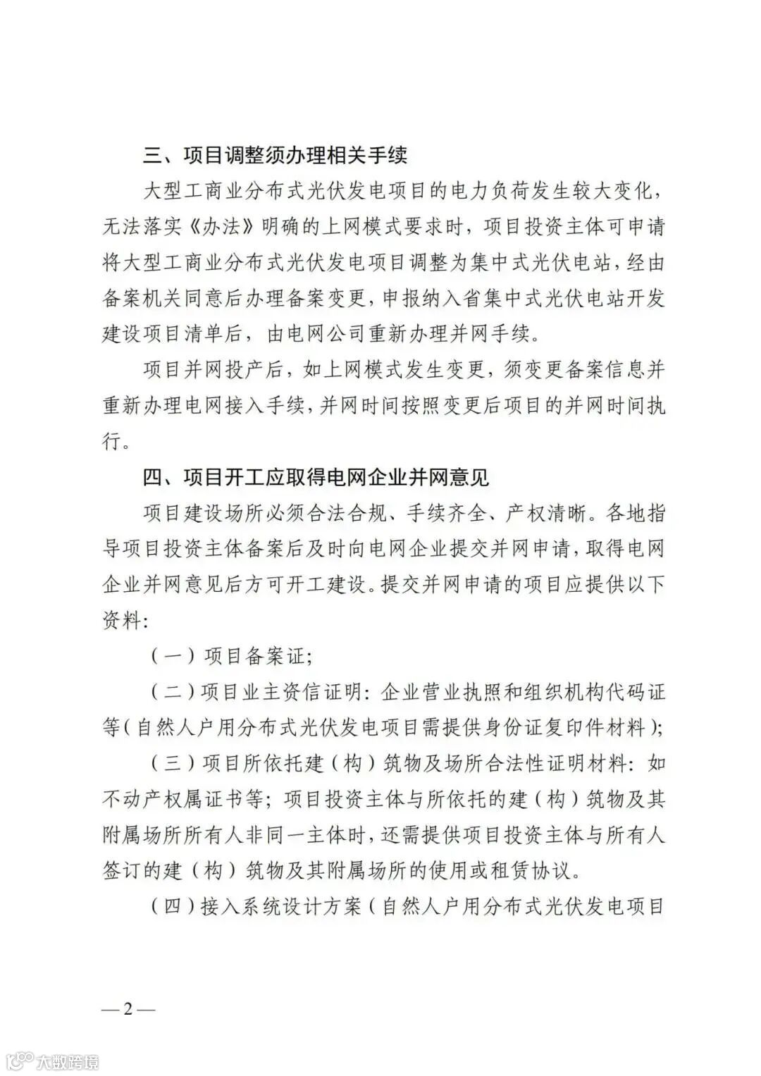 四、项目开工应取得电网企业并网意见