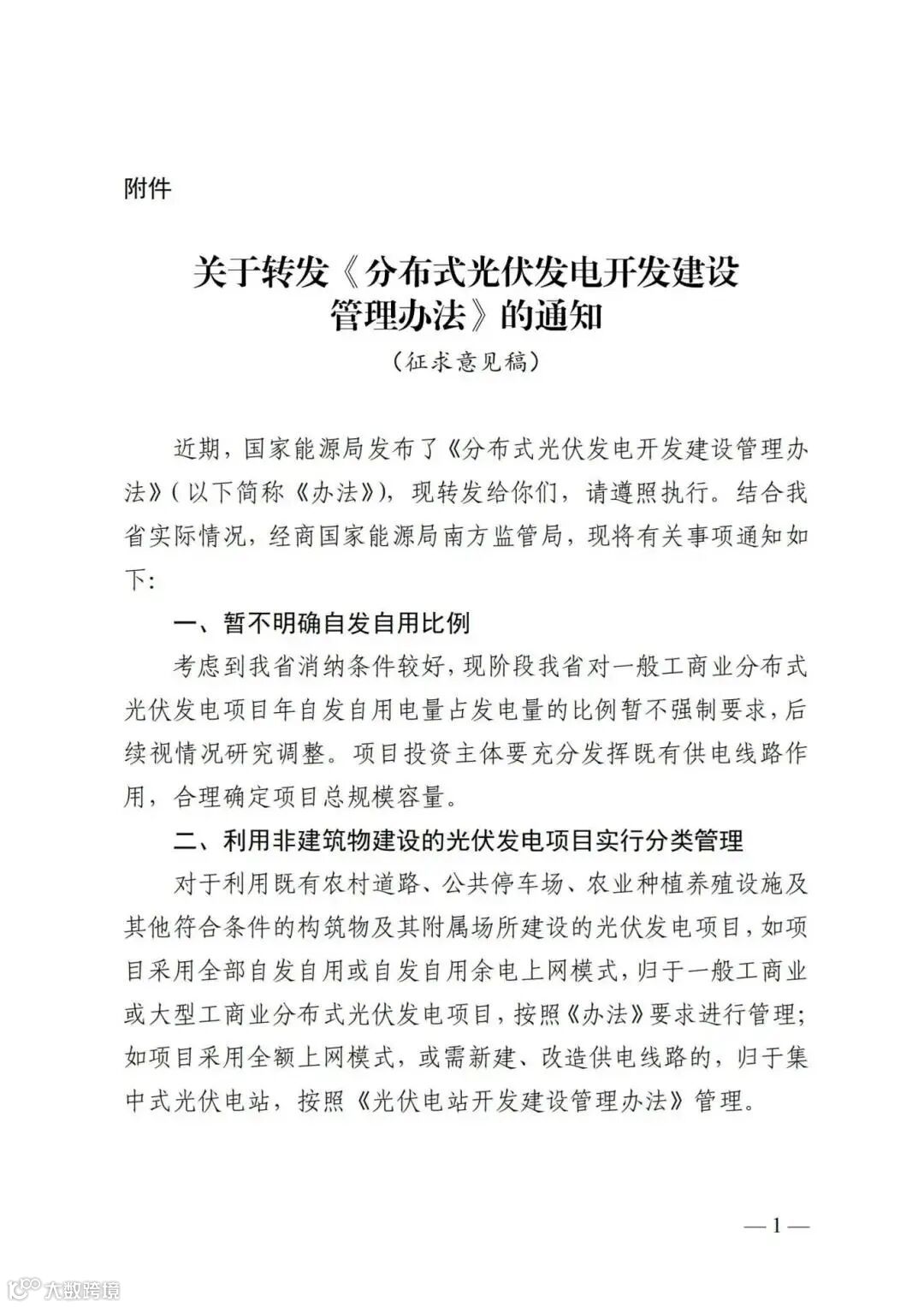 广东省能源局于3月20日发布了《关于转发<分布式光伏发电开发建设管理办法>的通知(征求意见稿)》意见的函(以下简称通知)。对于提出意见,要求3月26日前将有关意见反馈到广东省能源局。