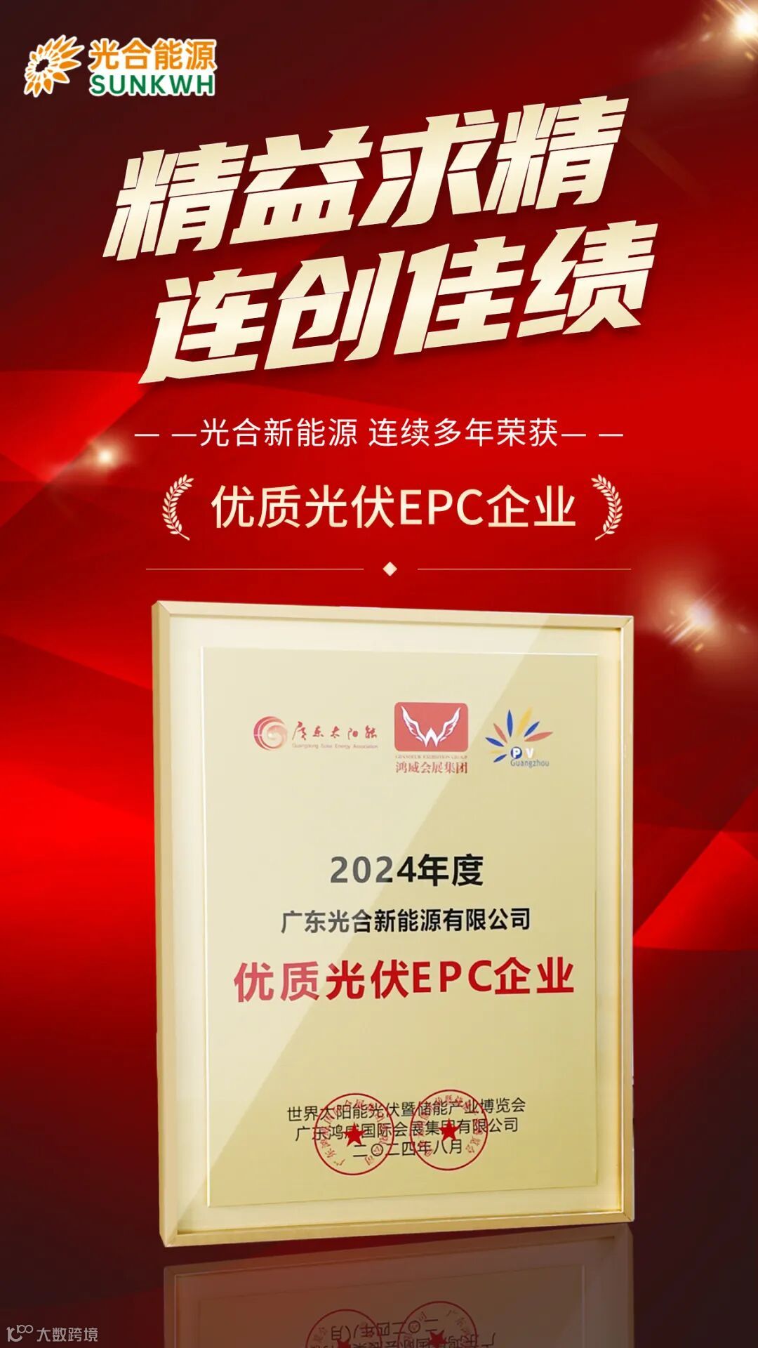 继2024年荣获“2024年度优质光伏EPC企业”后,广东光合新能源有限公司连续多年获此荣誉,这是行业专家、协会、各级单位以及客户对光合新能源的肯定。