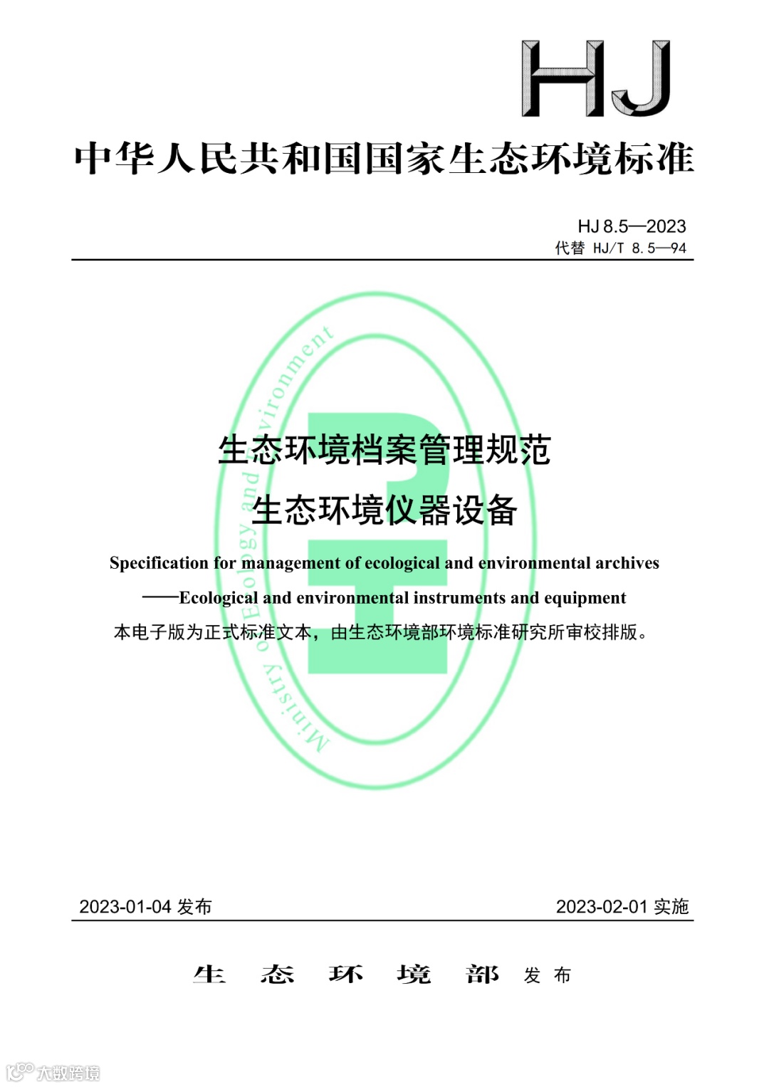 以下2项国家生态环境标准于2023年2月1日起实施。同时,《环境保护档案管理规范 建设项目环境保护管理》(HJ/T 8.3-94)、《环境保护档案管理规范 环境保护仪器设备》(HJ/T 8.5-94)废止。