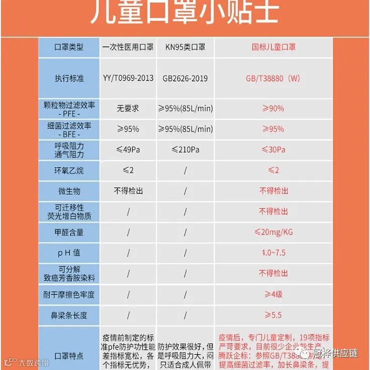知道了这些误区,那对于挑选合适的儿童口罩就易如反掌了。最简单的就是看执行标准。我国在2020年出台了GB/T38880-2020国标规定了儿童口罩的防护、舒适、安全等性能,因此符合国标、正规厂家出品的,家长都可以放心挑选。