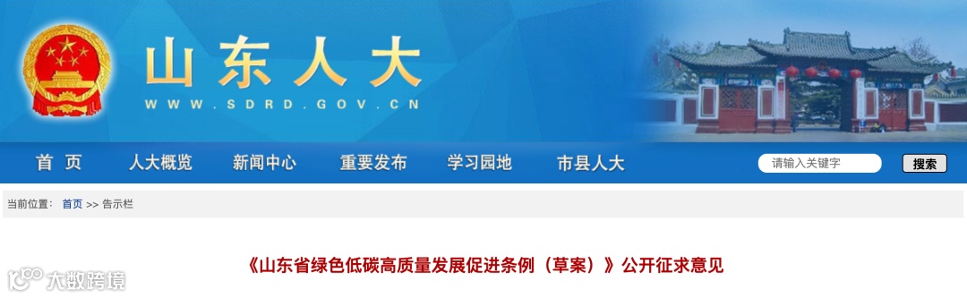 《山东省绿色低碳高质量发展促进条例(草案)》已经省十四届人大常委会第十一次会议初次审议。根据《山东省地方立法条例》规定,现将《山东省绿色低碳高质量发展促进条例(草案)》全文公布,公开征求社会各界的意见和建议。