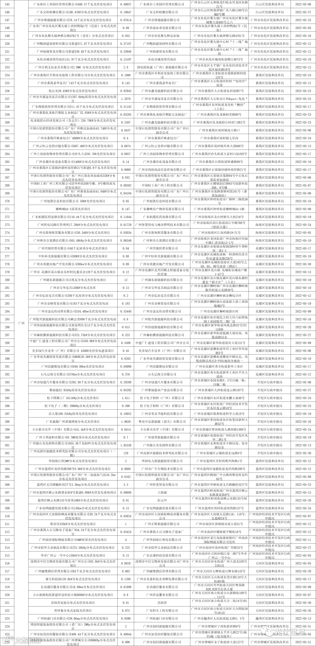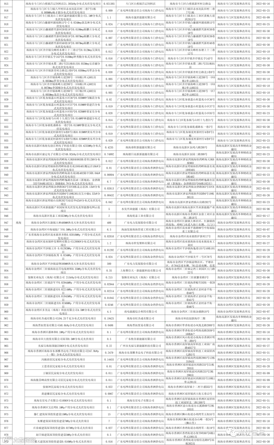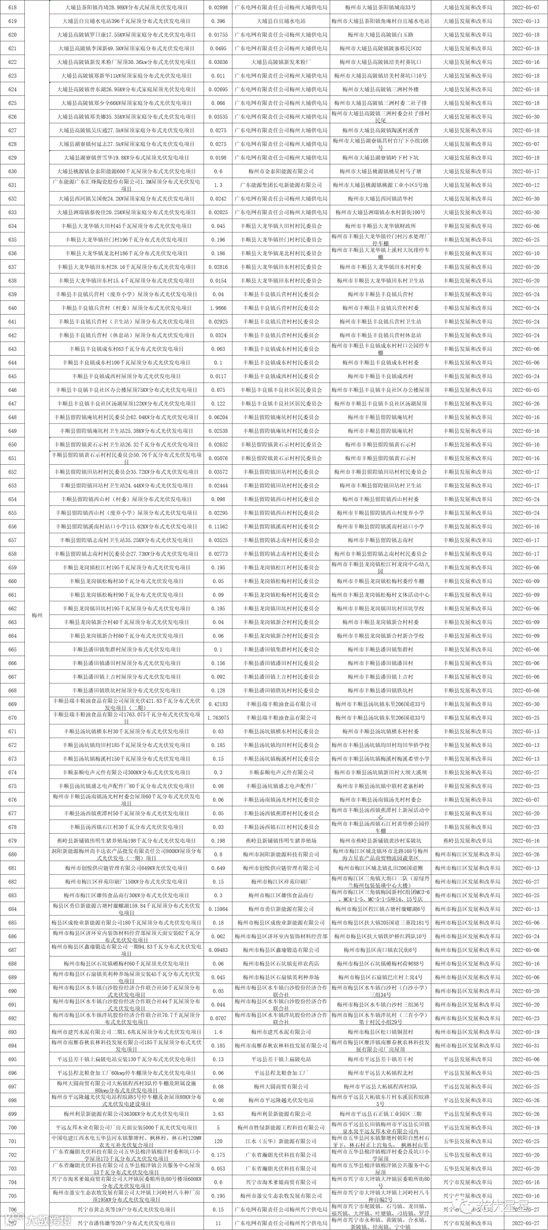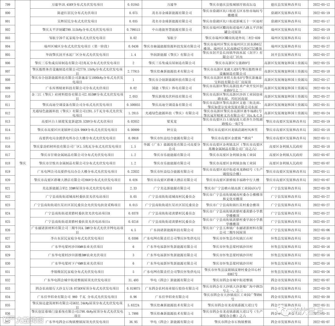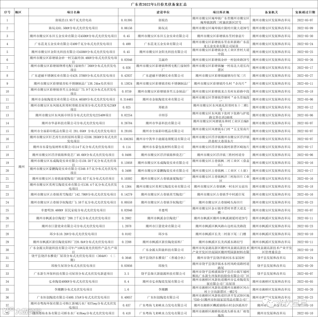 根据相关数据统计,广东省2022年5月集中式、分布式光伏项目备案信息。五月光伏项目备案,共3.02GW。分布式光伏项目备案个数较多的为东莞、梅州、中山。各地区备案个数与容量如下表: