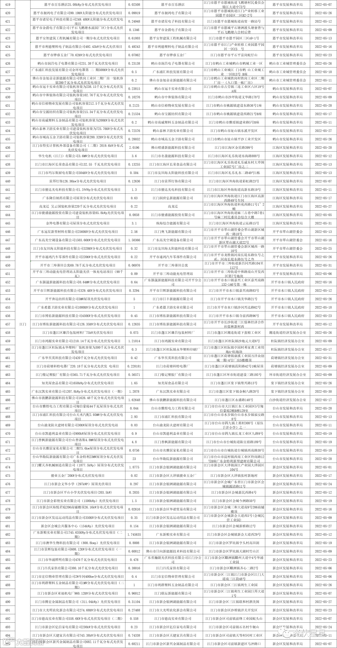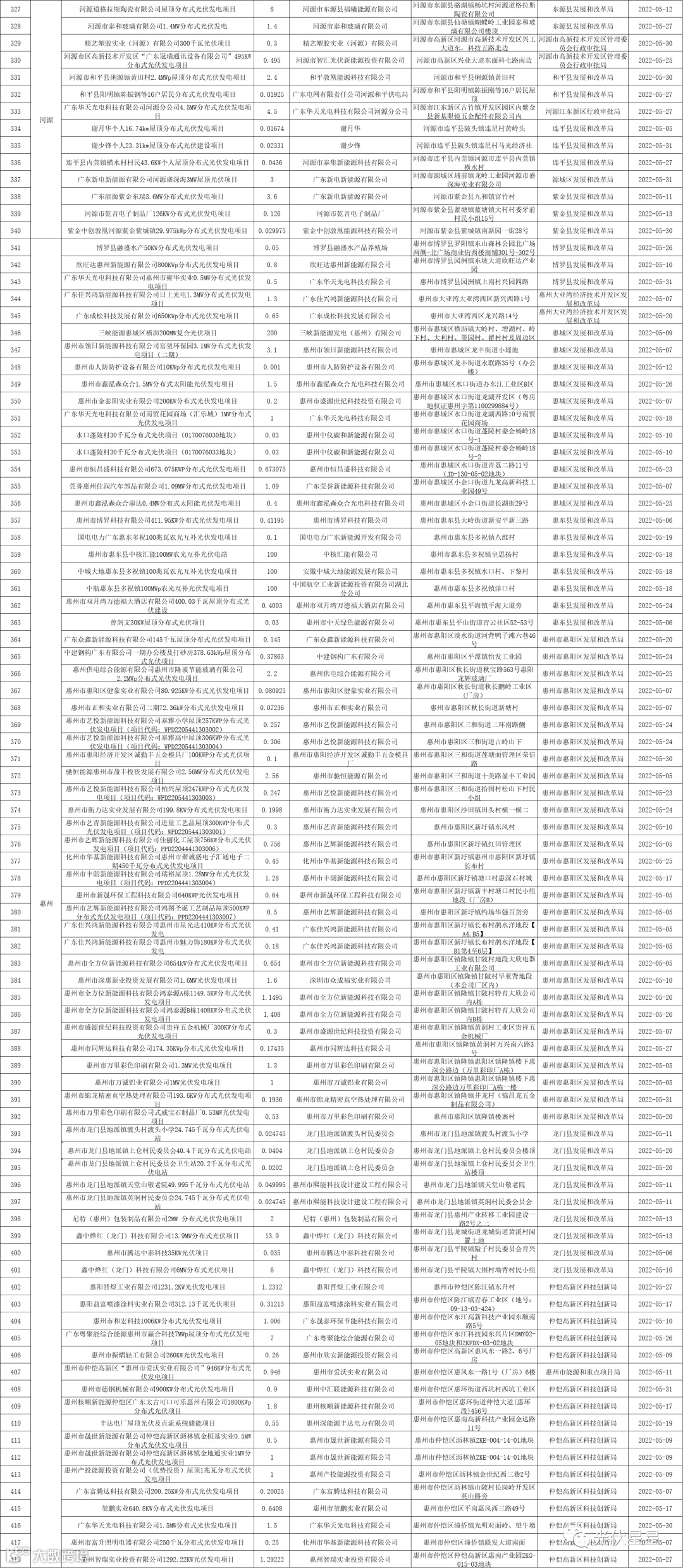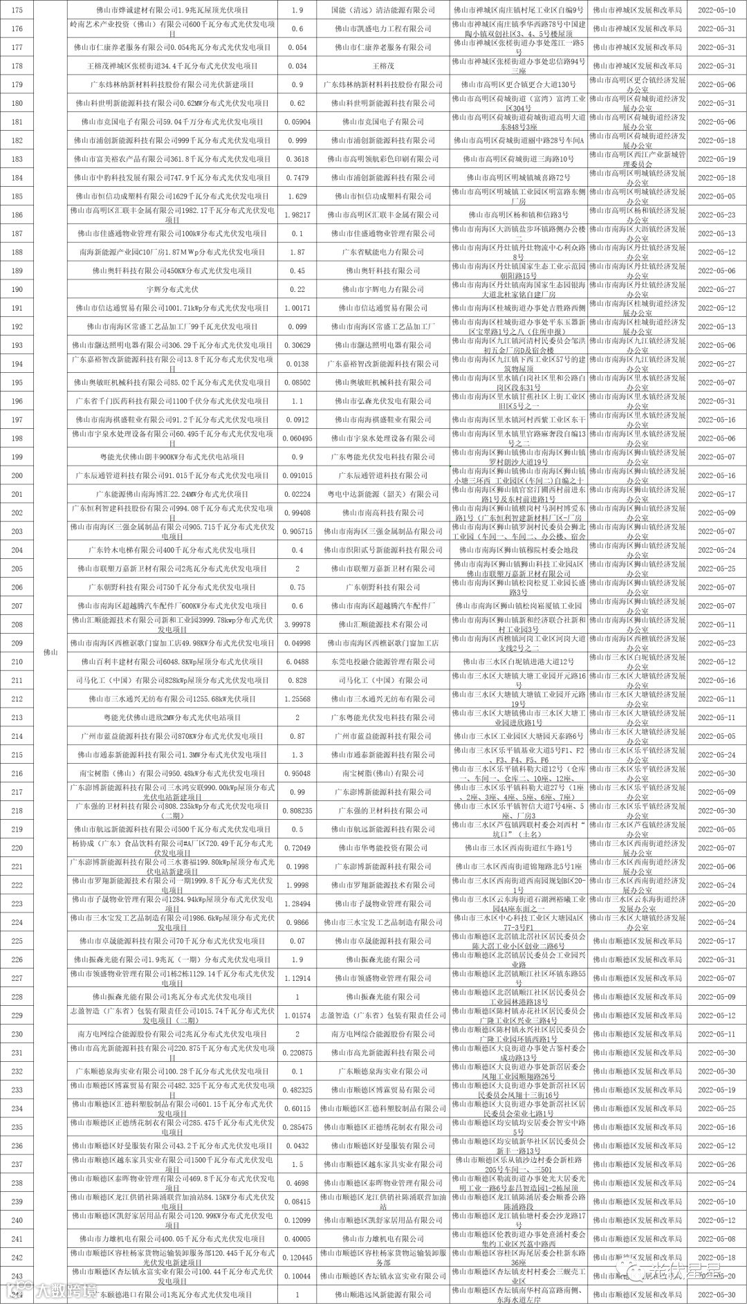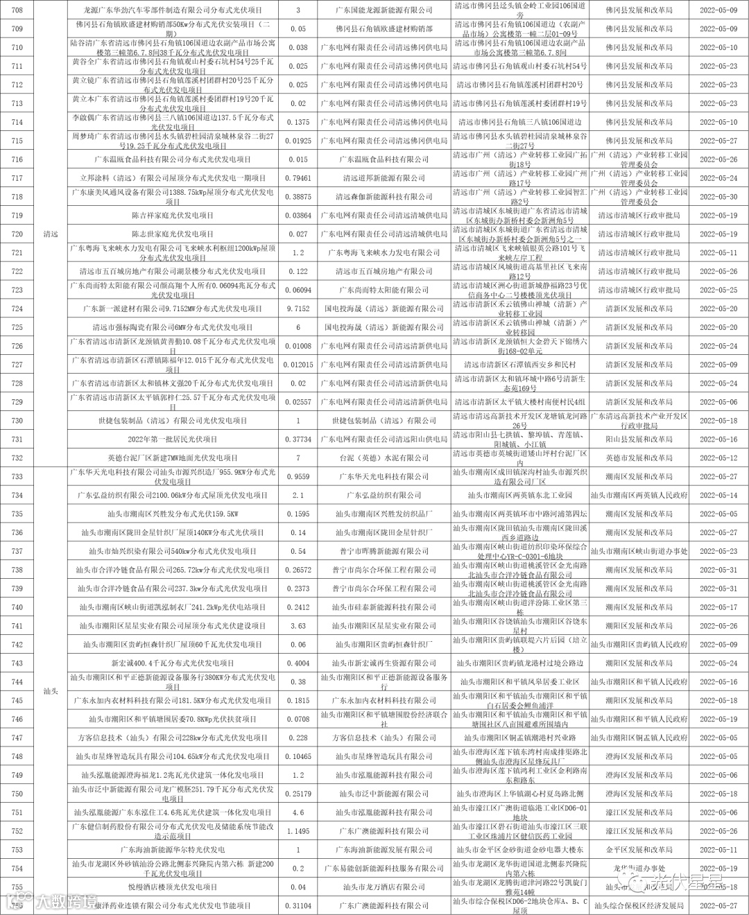 根据相关数据统计,广东省2022年5月集中式、分布式光伏项目备案信息。五月光伏项目备案,共3.02GW。分布式光伏项目备案个数较多的为东莞、梅州、中山。各地区备案个数与容量如下表: