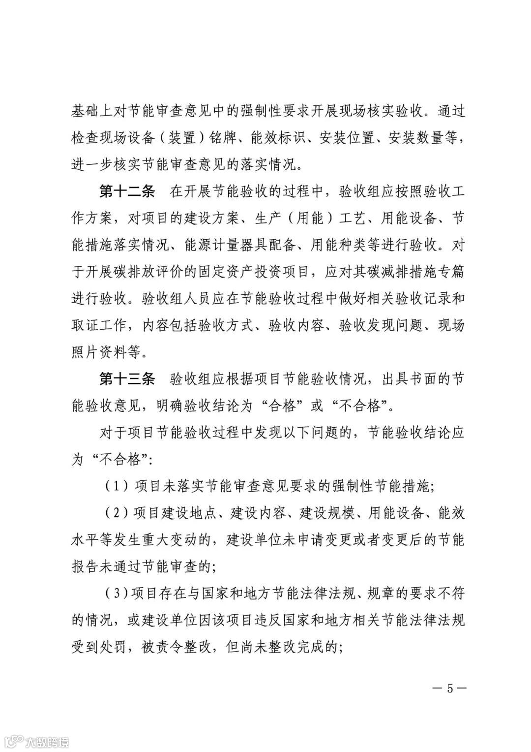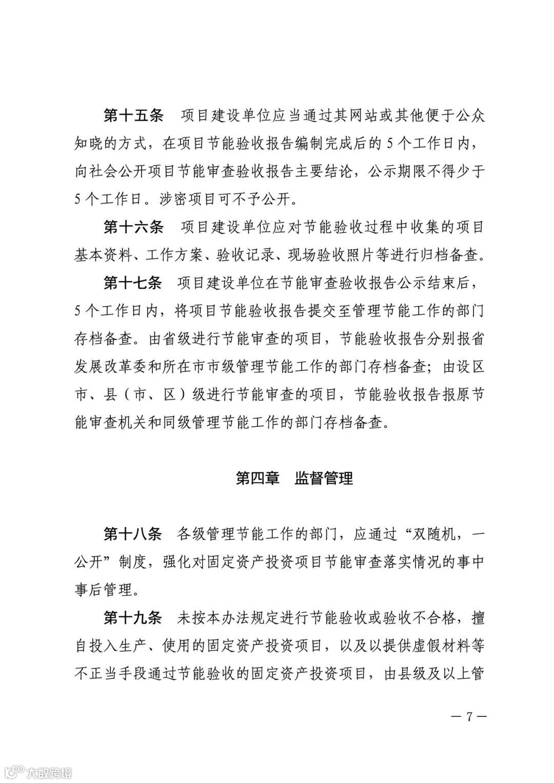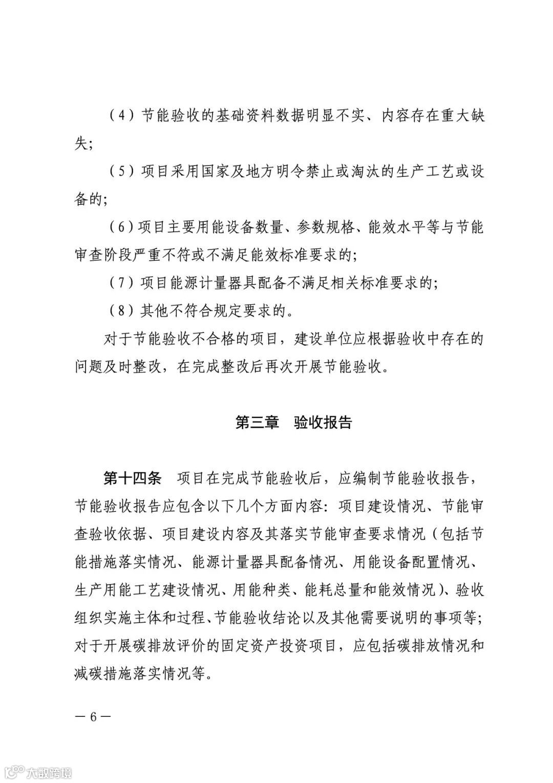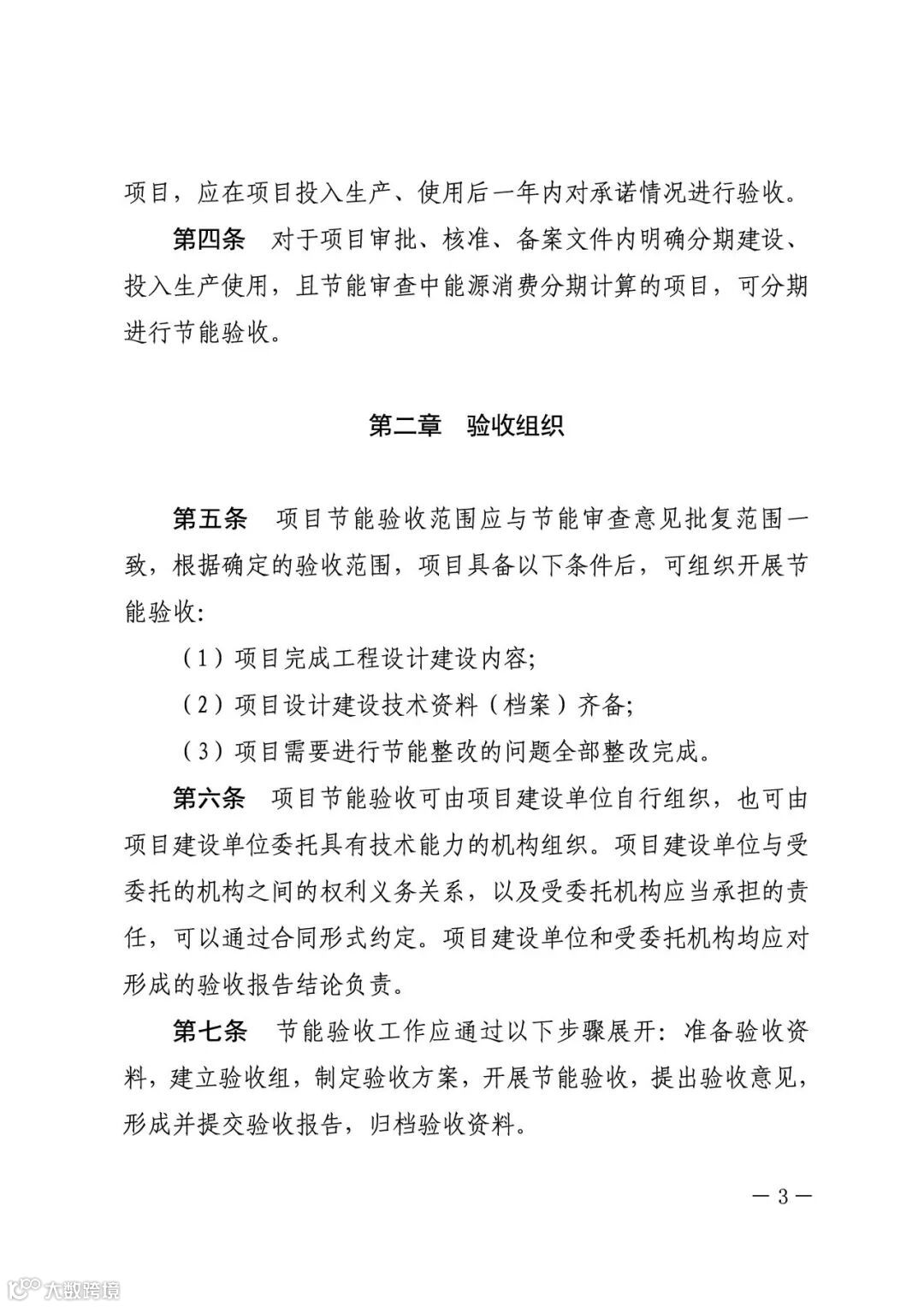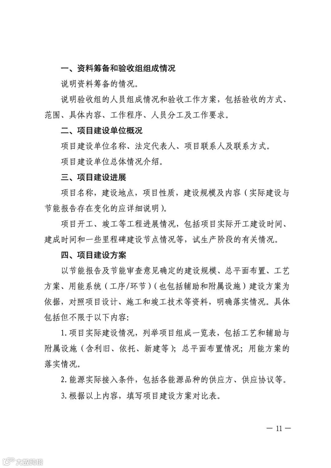 项目建设单位承担节能验收工作主体责任。固定资产投资项目投入生产、使用前,建设单位应组织对项目节能报告中的生产工艺、用能设备、节能技术采用情况以及节能审查意见落实情况进行验收。需要进行试生产(调试阶段、试运转)的项目,应在正式投产前完成节能验收。未经验收或验收不合格的项目,不得投入生产、使用。不单独进行节能审查的固定资产投资项目,应在项目投入生产、使用后一年内对承诺情况进行验收。文件内容如下: