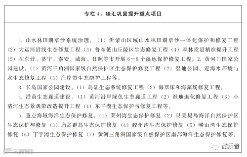 2.提升生态系统碳汇能力。深入推进科学绿化试点示范省建设,实施森林质量精准提升工程,加快鲁中南和鲁东山地丘陵区两大生态屏障建设,提高森林质量。强化森林资源保护,切实加强森林抚育经营和低效林改造。完善湿地分级管理体系,实施湿地保护修复工程,通过退养还滩、生态补水等措施,修复退化湿地,增强固碳能力。到2030年,全省森林覆盖率完成国家下达任务。(责任单位:省自然资源厅、省水利厅、省发展改革委)