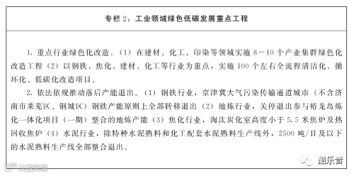 1.推动工业领域绿色低碳发展。加快退出落后产能,推动传统产业绿色化高端化发展,积极发展绿色低碳新兴产业,建立高效绿色低碳的现代工业体系。实施节能降碳行动,严格能效约束,加快重点领域节能降碳步伐,带动全行业绿色低碳转型。提高铸造、有色、化工等行业的园区集聚水平,深入推进园区循环化改造,着力提高工业园区绿色化水平。积极推行绿色设计、建设绿色工厂、打造绿色供应链,深入推进清洁生产,加快发展绿色工业园区和生态工业园区。加强电力需求侧管理,提升工业电气化水平。大力发展节能环保产业。开展全流程二氧化碳减排示范工程,推动企业设备更新和技术改造,加快绿色低碳转型步伐。(责任单位:省工业和信息化厅、省发展改革委、省生态环境厅)