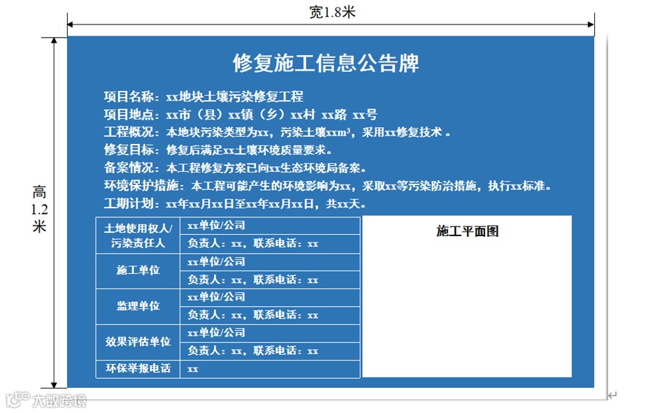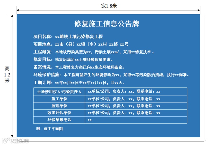 实施土壤污染风险管控和修复活动,施工单位在施工期间,应当设置“修复施工信息公告牌”,公开相关情况和环境保护措施。