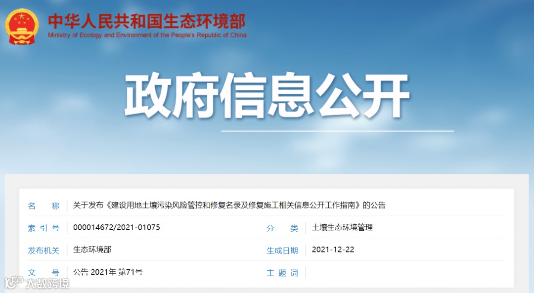 关于发布《建设用地土壤污染风险管控和修复名录及修复施工相关信息公开工作指南》的公告