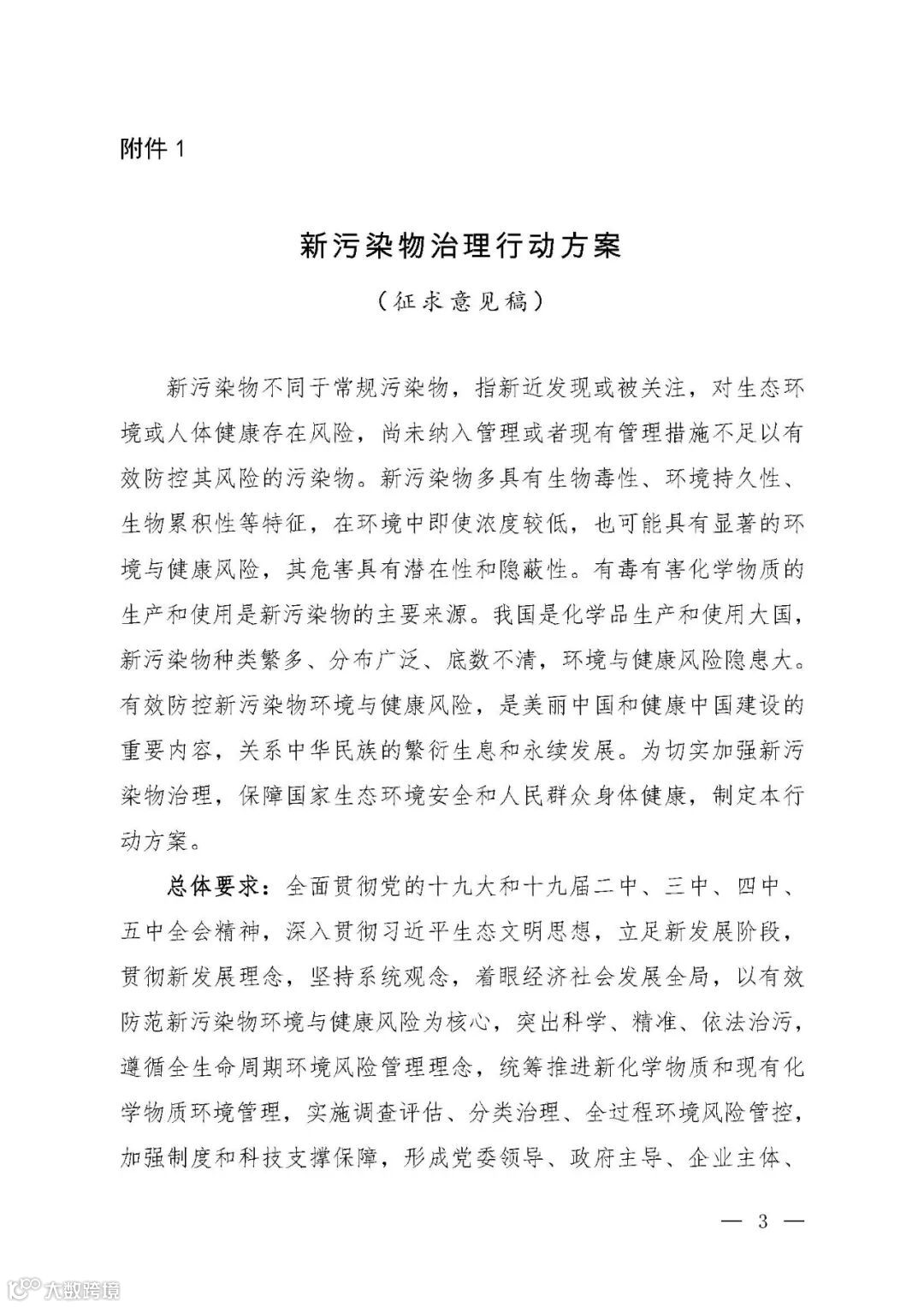 附件:1.新污染物治理行动方案(征求意见稿)