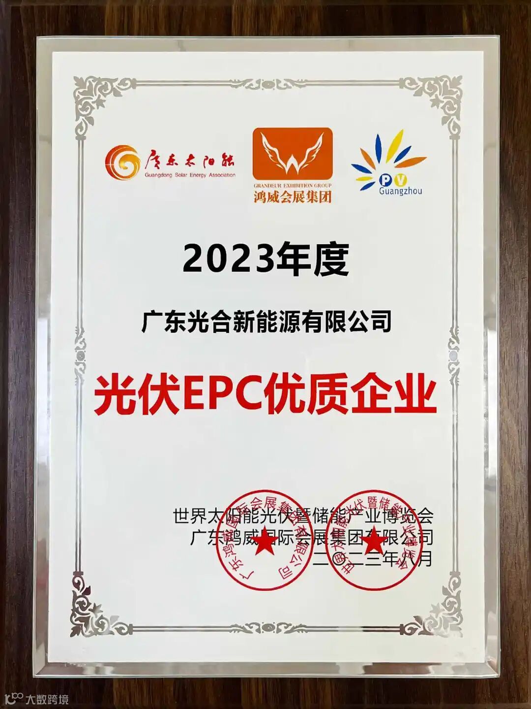 大会上,为答谢一众为太阳能行业发展作出杰出贡献、促进广东省太阳能行业可持续发展的优秀企业进行表彰,光合能源荣获“2023年光伏EPC优质企业”。