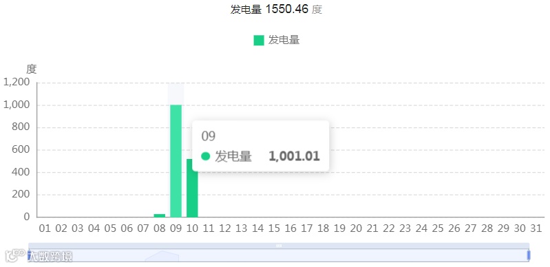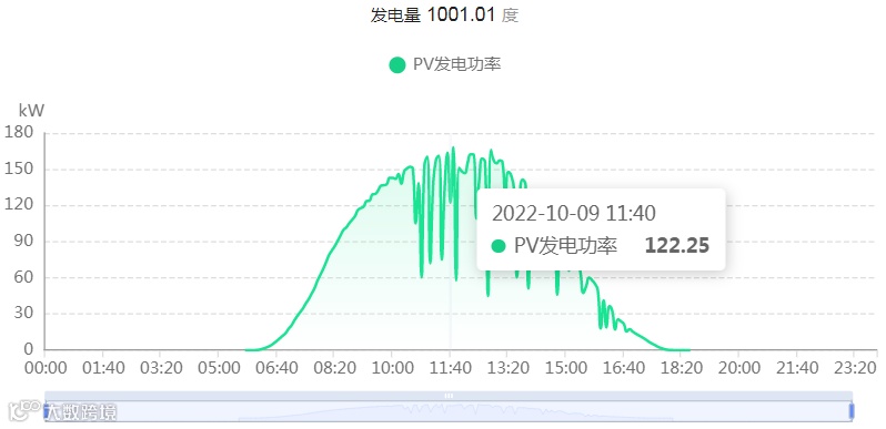 (表2 10月09日发电数据,中午11:40分光照充沛,发电量达到最高峰值,发电功率达122.25kW)