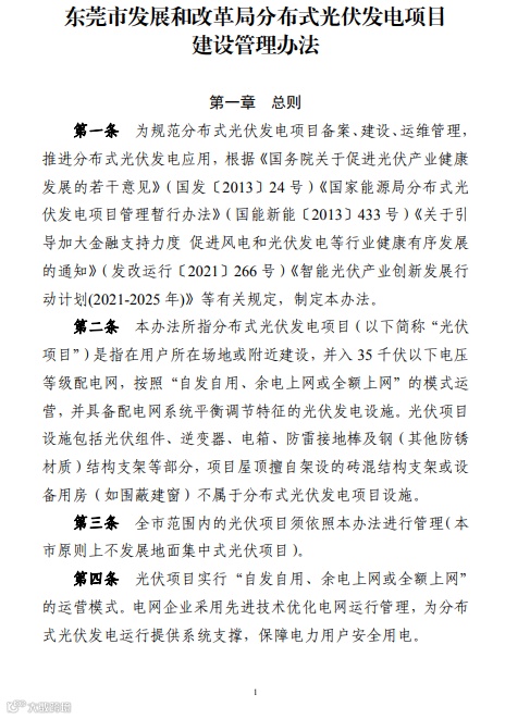 10月27日,东莞市发改委关于印发《东莞市发展和改革局分布式光伏发电项目建设管理办法》的通知,这与之前发布的93号文件《东莞市加快分布式光伏规模化开发利用工作方案》一并组成了东莞市光伏电站开发建设的指导性文件,现予转发。