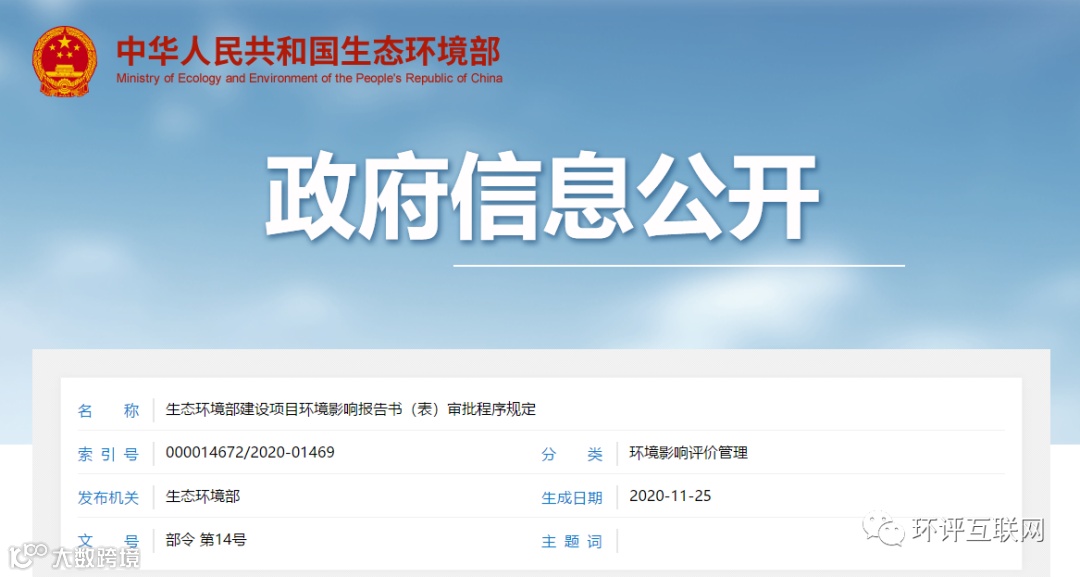 《生态环境部建设项目环境影响报告书(表)审批程序规定》正式发布
