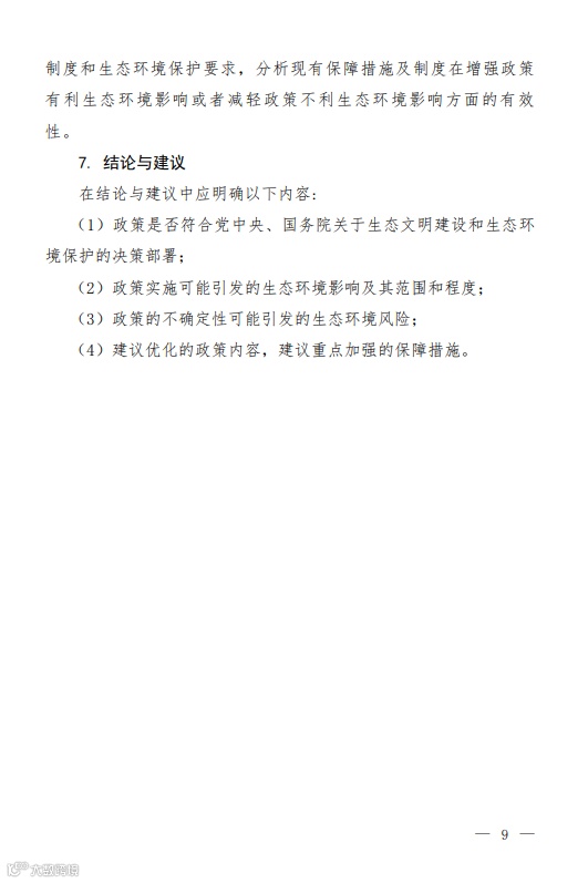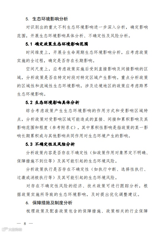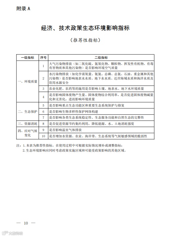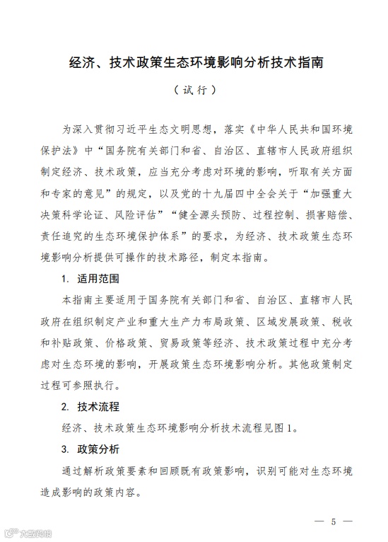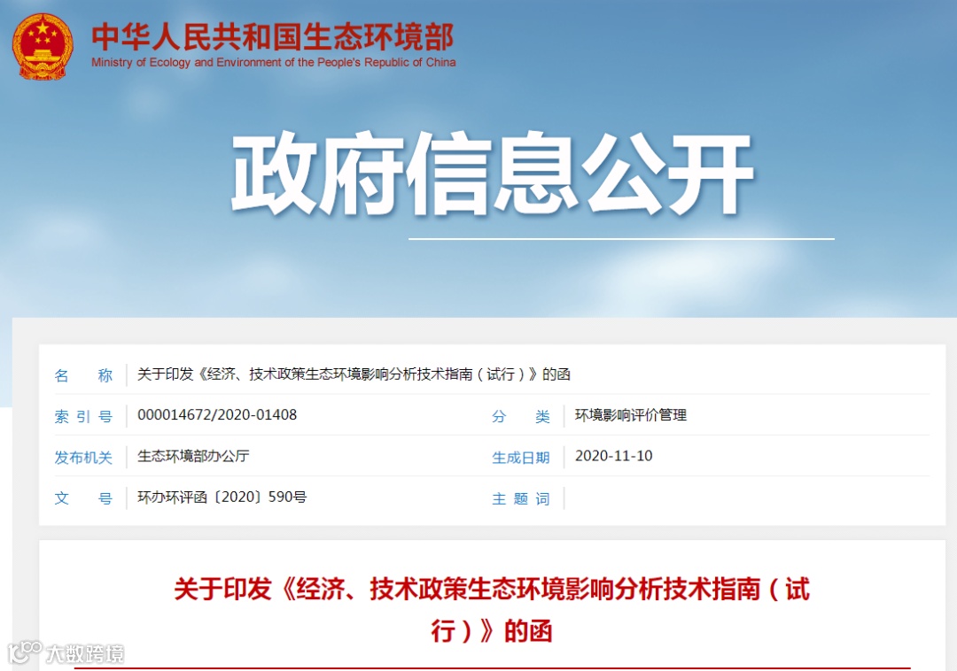 关于印发《经济、技术政策生态环境影响分析技术指南(试行)》的函