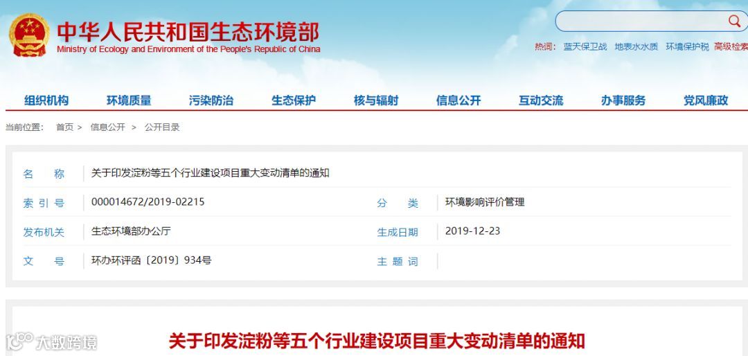 关于印发淀粉等五个行业建设项目重大变动清单的通知