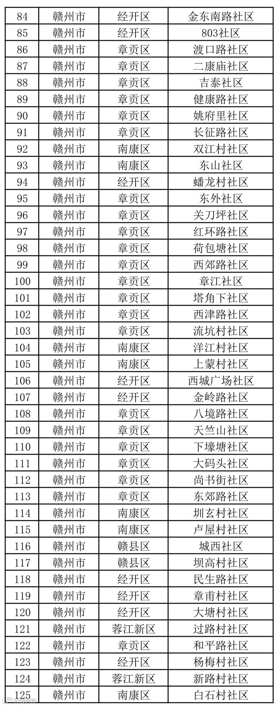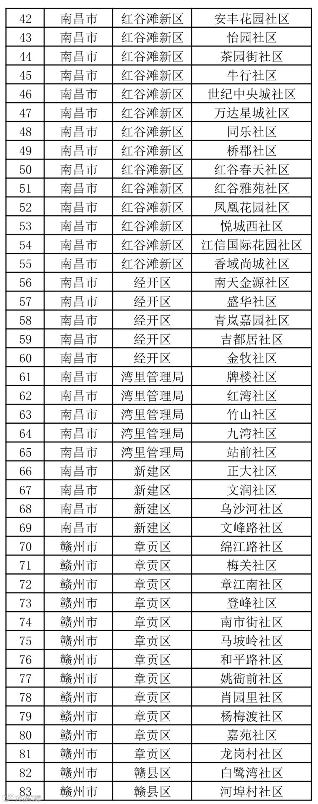 江西省第一批绿色社区名单