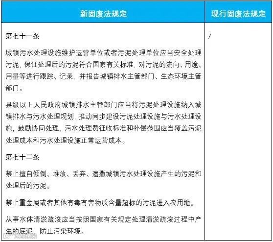 2.新增了城镇污水处理设施维护运营单位和污泥处理单位对污泥处理的义务
