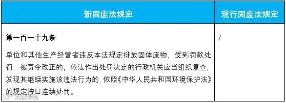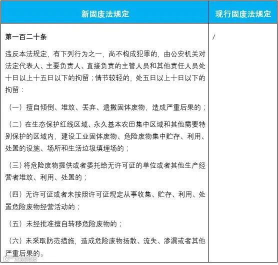 新固废法对法律责任专章进行了扩充完善,加大了对固废管理不合规的处罚力度,增加了企业的违法成本。除了对新增内容设定了相应罚则外,还普遍提高了违法行为的处罚金额,最高可罚至500万元,并且增加了按日连续处罚、行政拘留、查封扣押等执法措施,这些严格的法律责任变化也值得企业的特别关注。