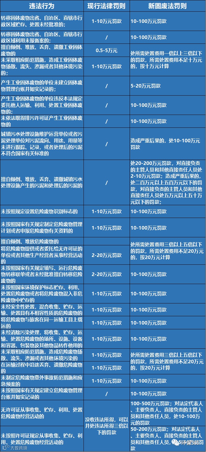 新固废法普遍提高了对违法行为的罚款金额幅度,具体见下表: