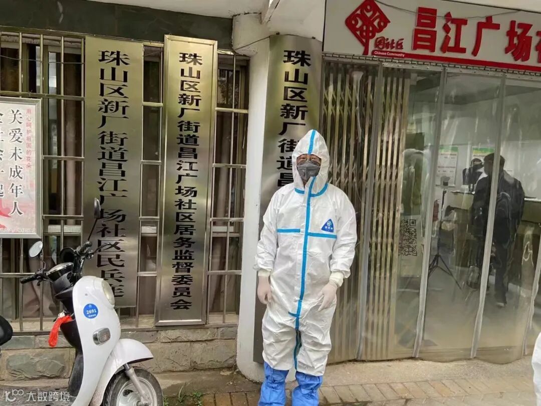 11月19日晚,结束了一天的工作后,得知珠山区封控消息的第一时间,华必克当即决定主动报名成为一名防疫志愿者,支援昌江广场社区的疫情防控工作。