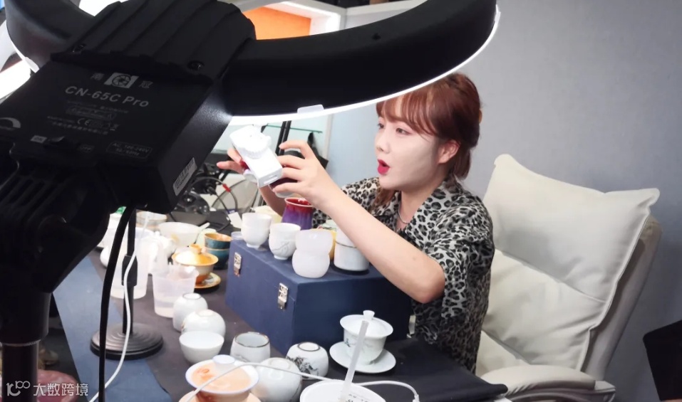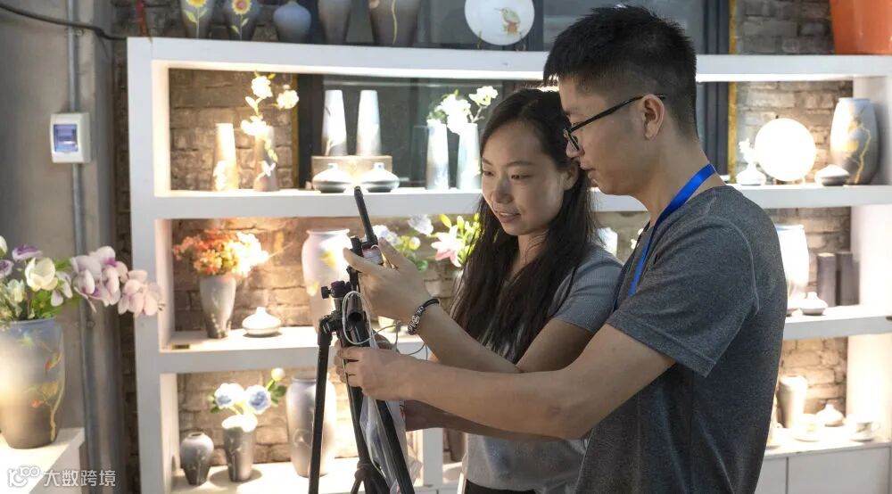陶溪川一家店铺内,一对“景漂”夫妇通过网络直播展示、销售商品(张浩波/摄)