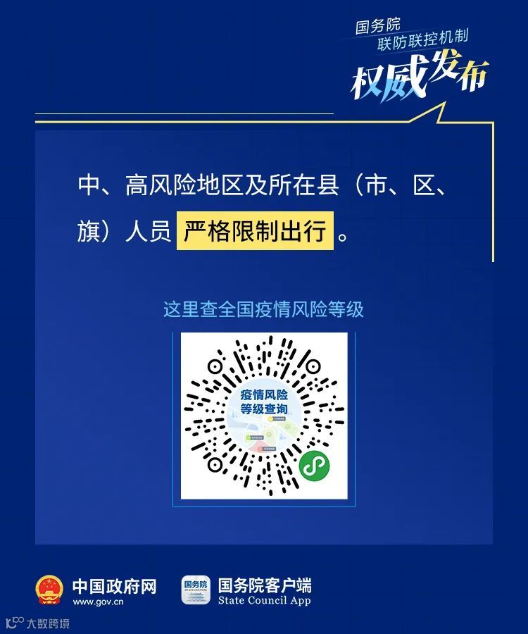 1.中、高风险地区及所在县(市、区、旗)人员严格限制出行。