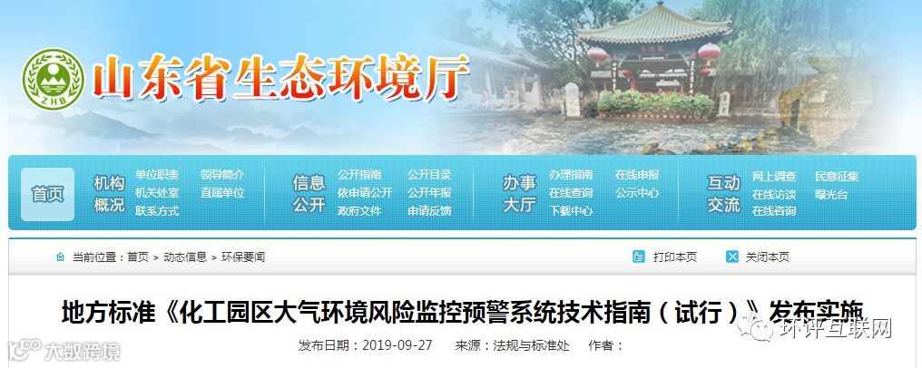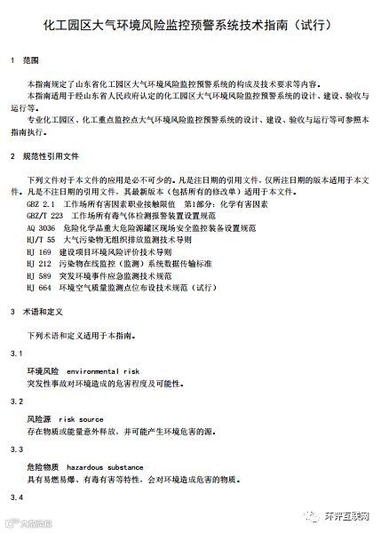 山东 | 《化工园区大气环境风险监控预警系统技术指南(试行)》发布