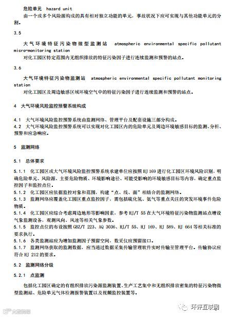 针对化工园区环境风险识别、重点监控因子筛选、监测点位的确定、监测网络分级等内容提出了具体要求。