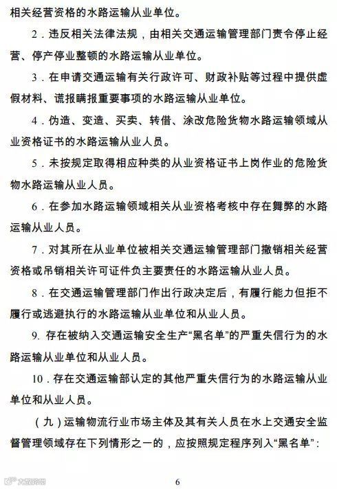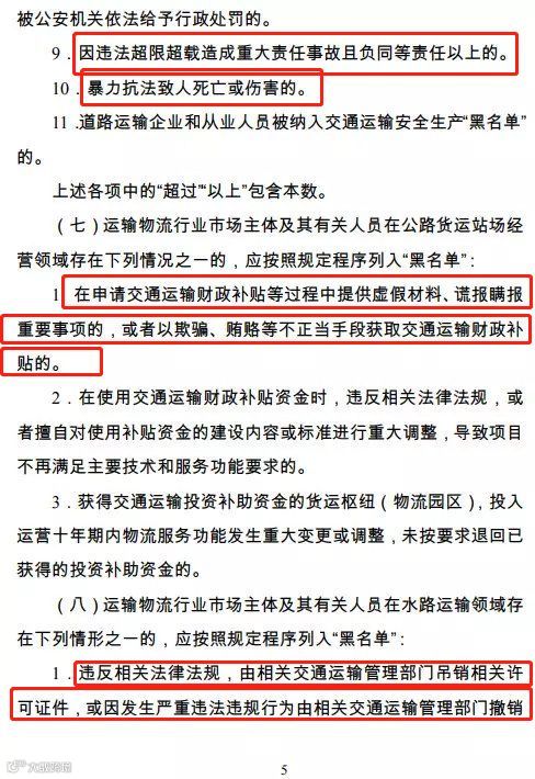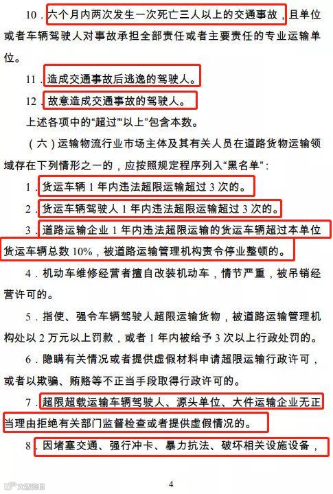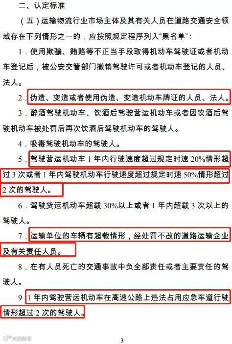 纳入运输“黑名单”的行为包括,超载、超速、酒驾、毒驾、占用高速应急车道以及违规取得驾驶证等等方面,