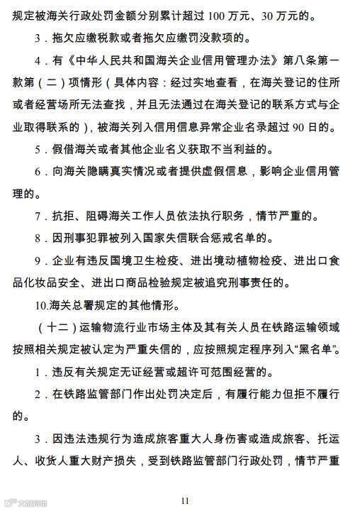 11、在失信主体办理通关等海关业务时,对其进出口货物实施严密监管,加强单证审核、布控查验或后续稽查。