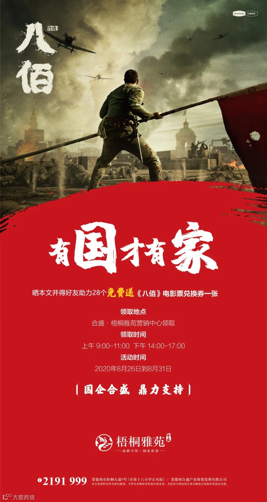 ,配文:我要去梧桐雅苑免费领“八佰”电影票!