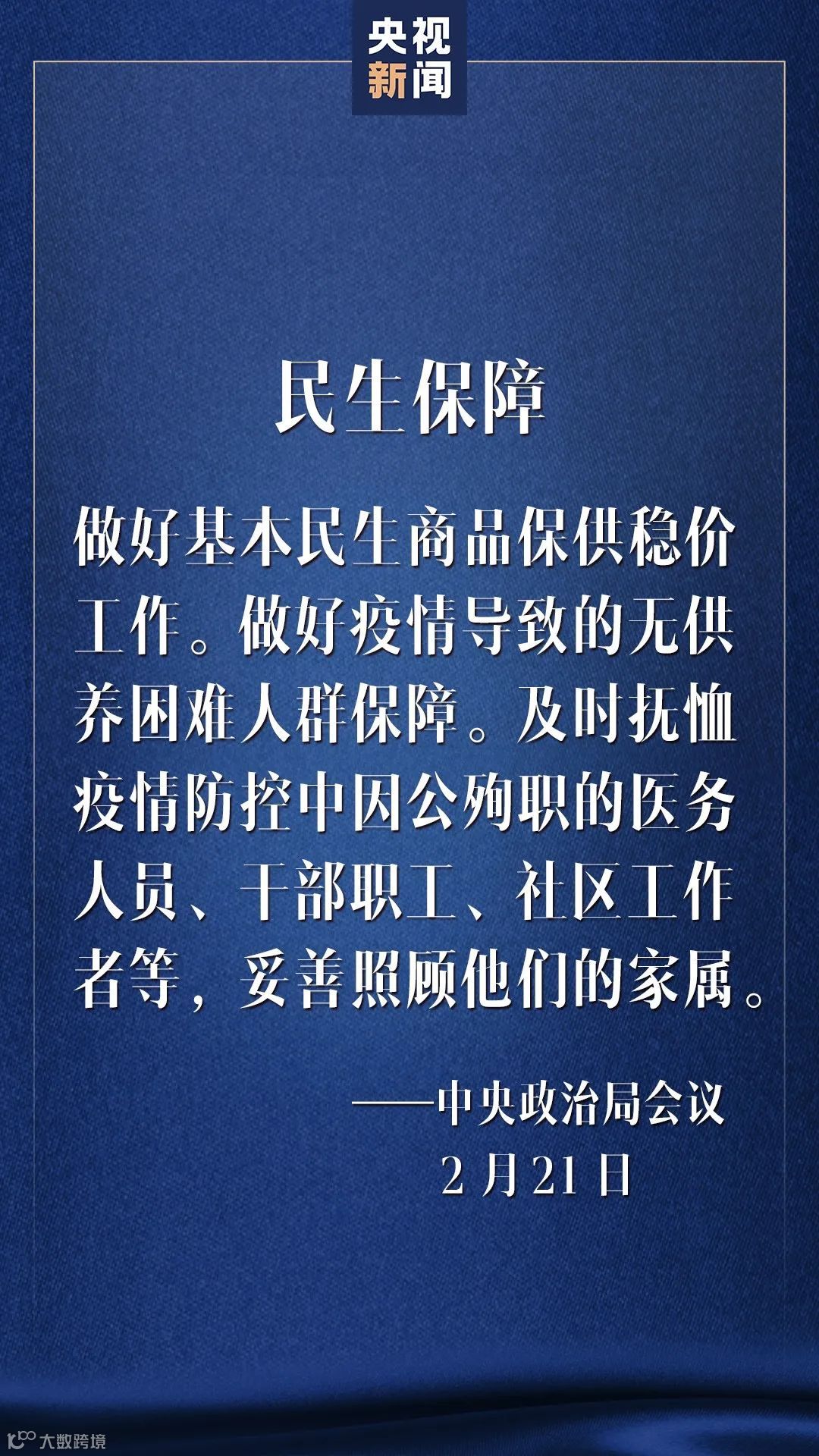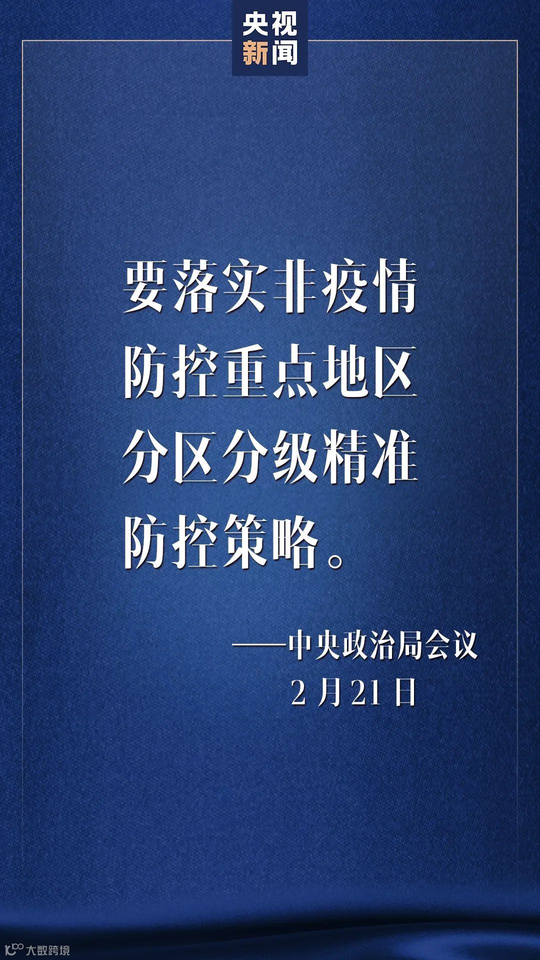 21日,中共中央政治局召开会议,研究新冠肺炎疫情防控工作,部署统筹做好疫情防控和经济社会发展工作。