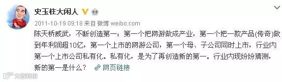 结果,这款《传奇》启动了陈天桥自己的财富传奇。