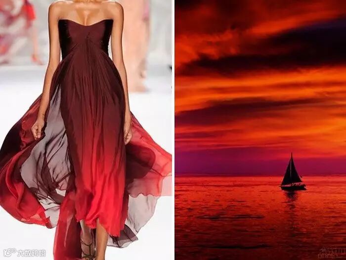 俄罗斯博主Liliya Hudyakova,一个灵感泉涌执行力超强的姑娘,她竟然把好多时装的灵感来源都扒出来了。我不知道她是用什么手段将这些衣服都找到对应的风景照片做原型,这一定是相当大的工作量,而且两者往往是那么的匹配合拍,就好像设计师从这些风景照片里抄的一样。