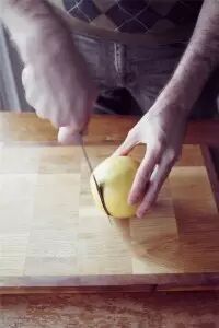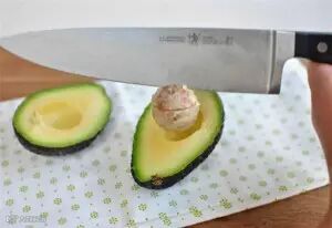 Step 3: 用一把锋利一点的刀插入牛油果核,卡住后轻轻把核拔出