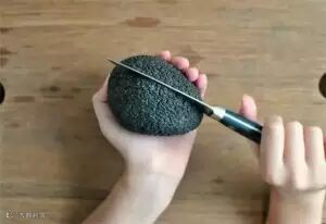Step 2 : 用刀划完一圈之后,双手握住牛油果扭一扭然后掰开两半
