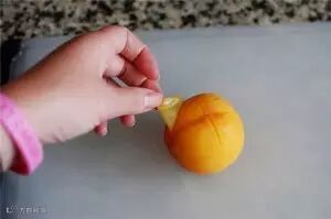 蜜柑去头去尾(千万不要切太过,不然会把果肉切走变得不好看,一般蜜柑的皮都不会太厚),然后在果皮上纵向切断果皮,最后慢慢拉扯开果肉,让它们展开即可。